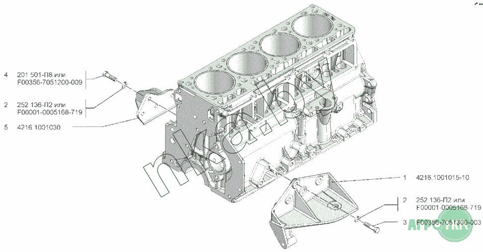 | 5 | 4216.1001030 | Кронштейн крепления подушки передней опоры двигателя к блоку правый | Нет на складе | |