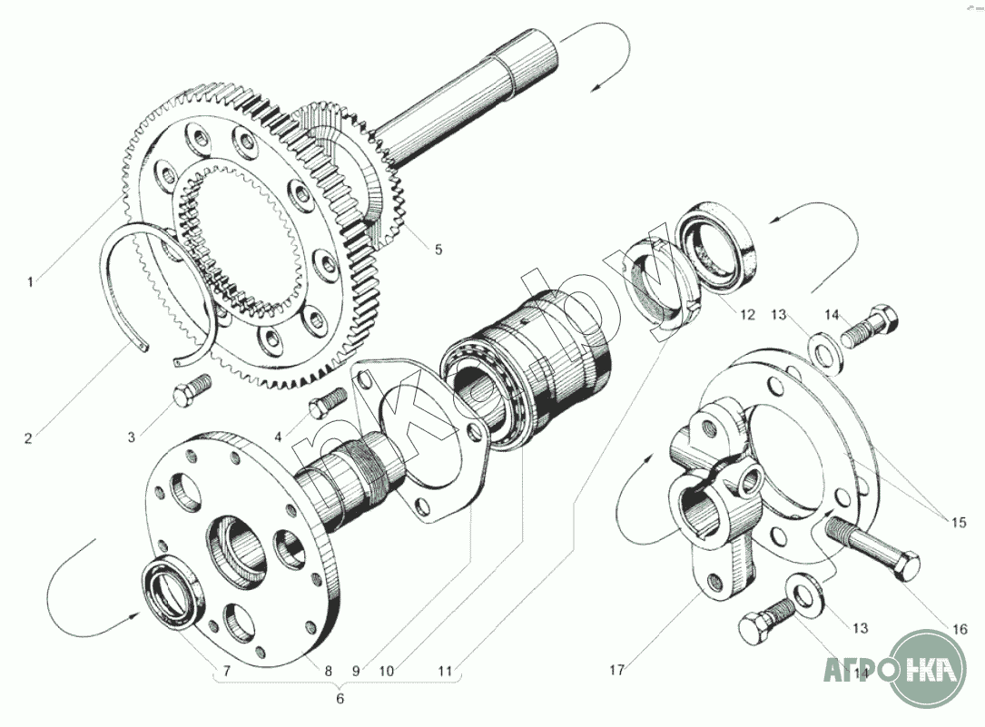 | 6 | 7511.1029120-10 | Ось ведомой шестерни с подшипником и маховиком в сборе | Нет на складе | |