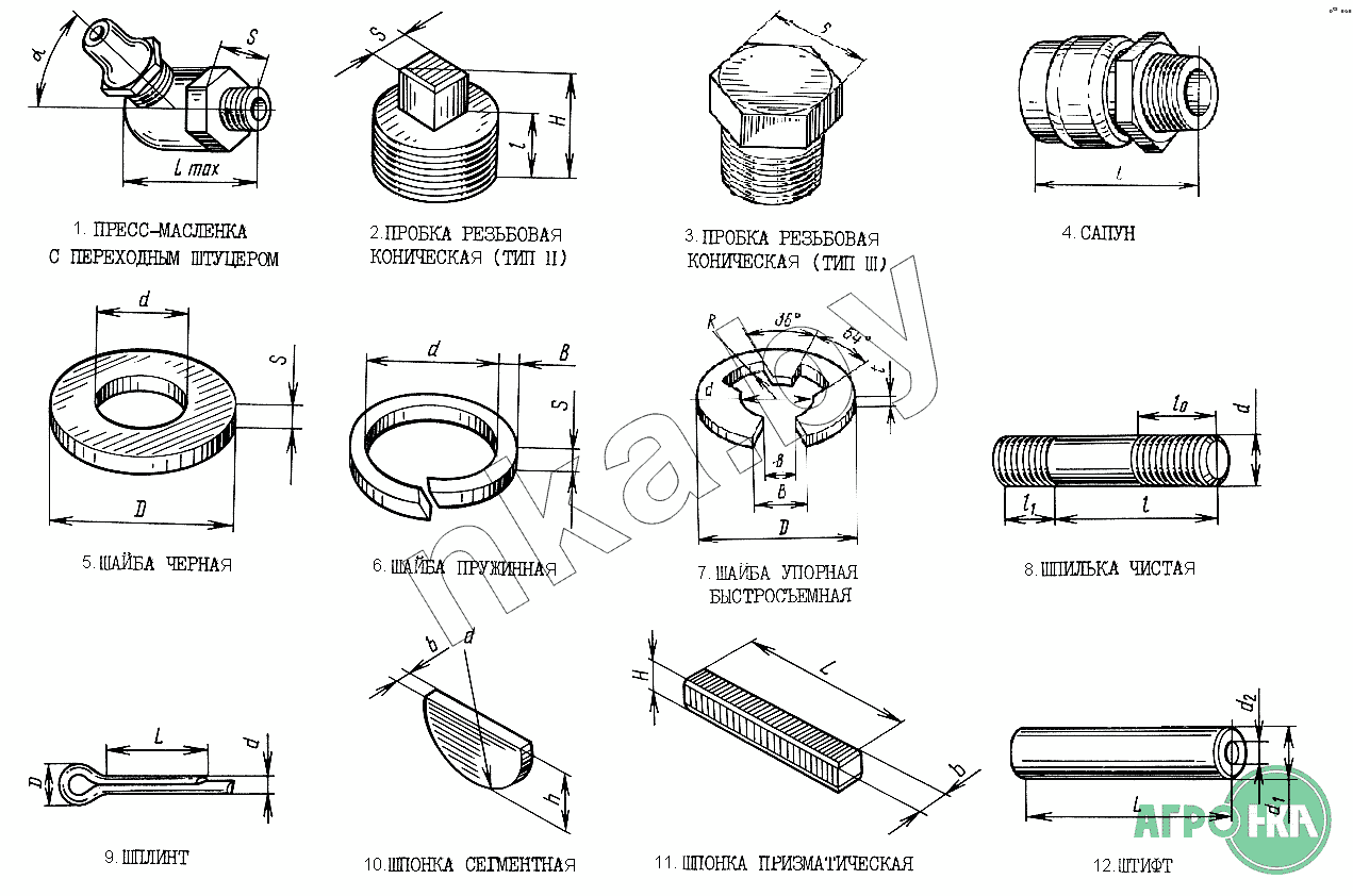 | 2 | 2КГ 3/8" С 20 086 | Пробка резьбовая коническая (тип 2) (S=12, H=20, l=12) | Нет на складе | |